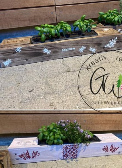 Wir gestalten ein Käuterkistchen auf einem Palettenfuss. Du kannst